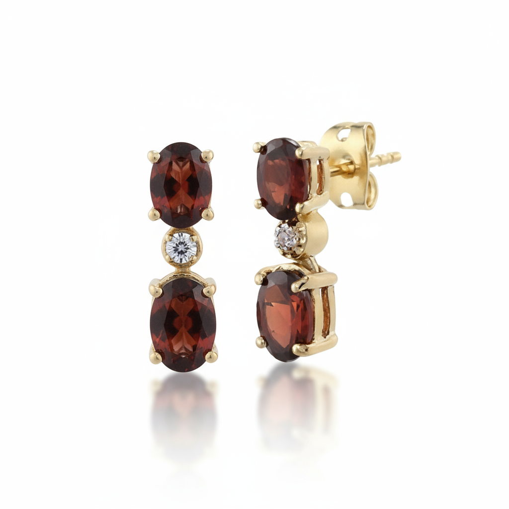 Ignite your elegance with the Crimson Aura Earrings — a masterpiece that balances boldness and grace. Featuring rich red AA-grade garnets (3.00 CTW) paired with round-cut near-colorless diamonds, these earrings shimmer with timeless beauty.
